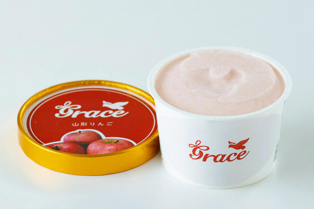 山形県産の紅玉りんご使用。香りが高く、程よい酸味の紅玉りんごはシャーベットに適しており、自然な色も楽しんで頂ける逸品です。