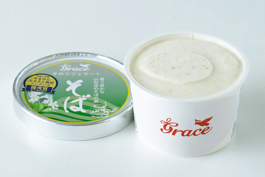 山形県産のそば「でわかおり」のそば粉とそば茶使用。そばの香りと味、そば茶の香ばしさがまるで木の実のような味の、おすすめの人気和風ジェラートです。